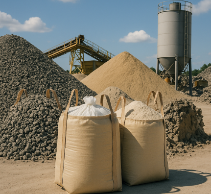 建設現場では、砕石や砂、セメントなどの資材を効率的に供給・保管する必要があります。丸型・大型(1,500L以上)・内袋付きフレコンバッグは、湿気から資材を守り、品質保持と作業効率化を同時に実現します。