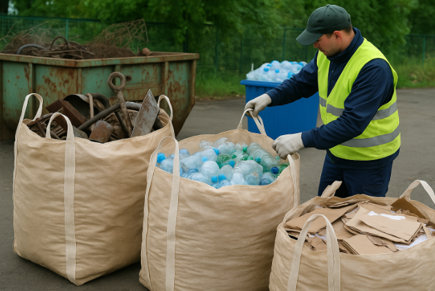 金属スクラップ・プラスチック・紙くずなどのリサイクル資材は、分別回収が重要です。丸型・大型(1,500L以上)・排出口ありフレコンバッグなら、資材をまとめて回収し、再利用時には排出口から効率的に分別が可能です。