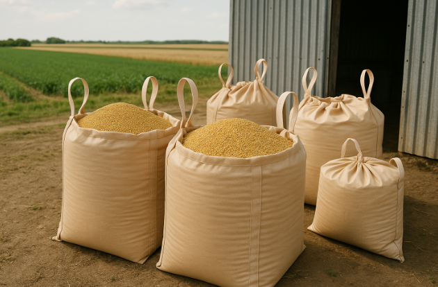 農家からの依頼で最も多いのが、米・麦・トウモロコシなどの穀物や肥料の一時保管です。丸型・小型(~500L未満)・ラミネーション無フレコンバッグは、小回りが利き扱いやすいため、少量の農産物を管理するのに最適です。