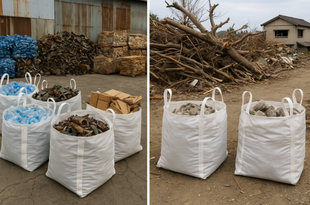 地震や豪雨などの災害時には、迅速な対応が求められます。軽量で扱いやすい丸型・小型(~500L未満)・ラミネーション無フレコンバッグは、災害廃棄物の一時保管用として自治体からの依頼が増加しています。