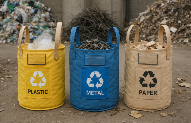 リサイクル業や産廃業者からは、「分別回収がしやすいフレコンバッグを依頼したい」という声が多く寄せられます。そこで株式会社平成がお勧めするのが、丸型・小型・付属品付きフレコンバッグです。
