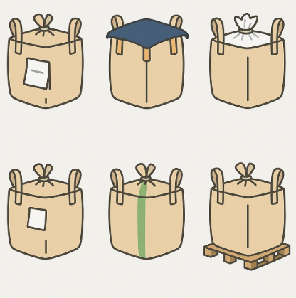 これらを組み合わせることで、現場ごとの課題に対応した付属品・大型(1,500L以上)・内袋付きフレコンバッグが完成します。