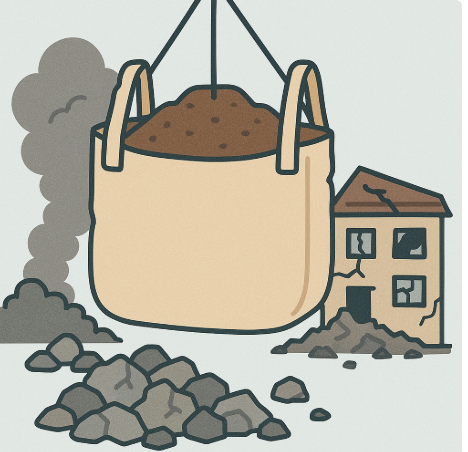 防災現場では「スピード」「効率」「安全性」が何よりも求められます。株式会社平成のフレコンバッグは、水害対策の大型土のうとしての利用から、災害時の瓦礫収集・搬送まで、自治体や防災現場のニーズに幅広く対応できる万能資材です。