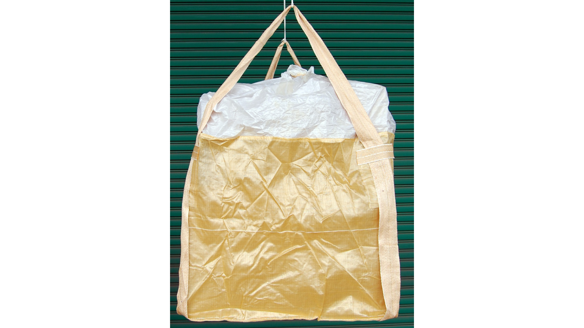 HS-004S 150602は、樹脂ペレット・肥料・粒状物の運搬に最適な設計です。 ただし、ラミネーションや内袋がないため、粉状の材料を直接運搬する場合は 湿気や外部の汚染にさらされる可能性があります。 粉体運搬には、内袋付きまたはラミネーション仕様のフレコンバッグを推奨します。 一方、粒状物運搬には非常に適しており、最大吊り荷重1,500kgの高耐久構造が特徴です。