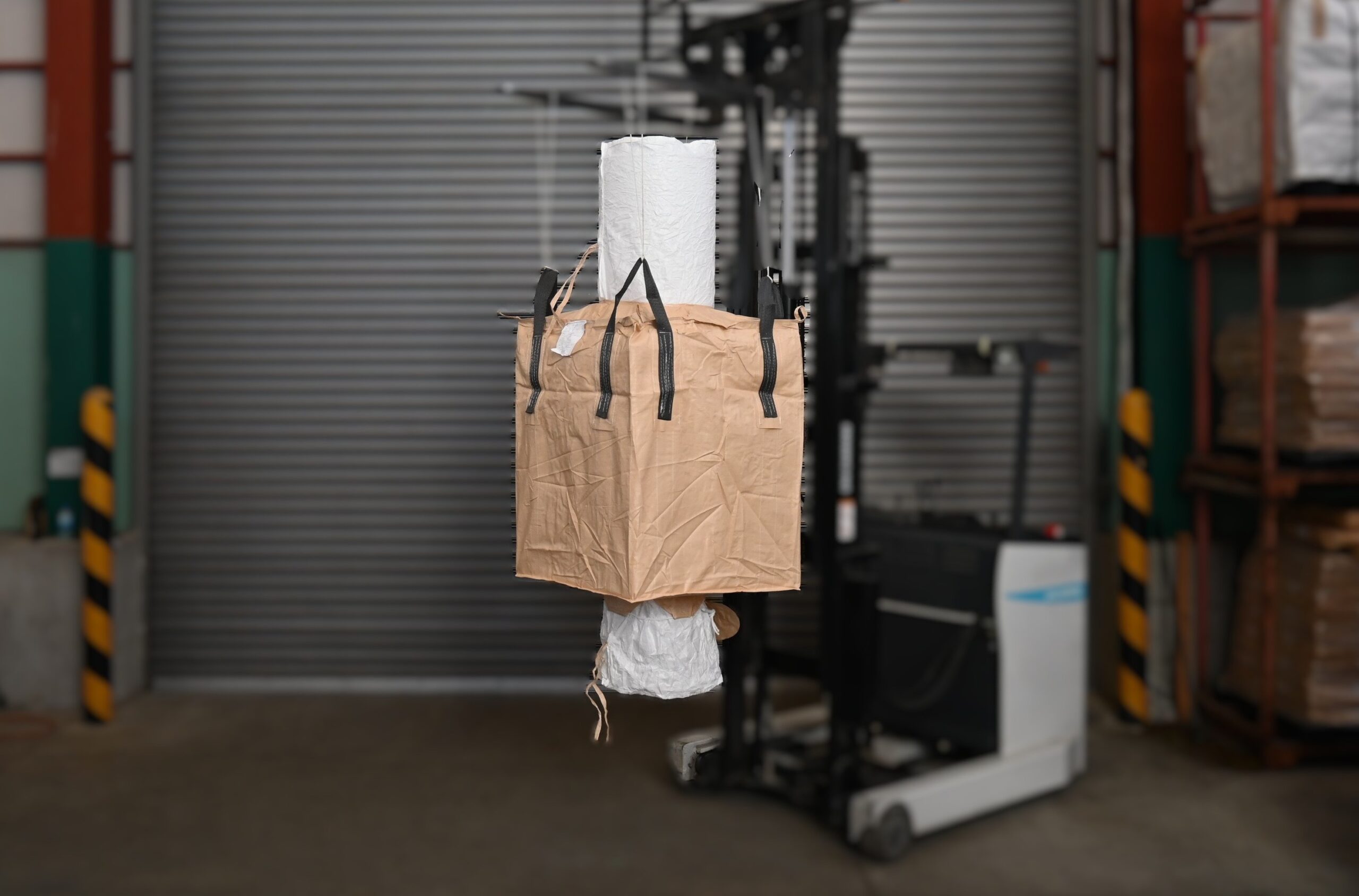 プラスチック製品工場では、粒状の樹脂ペレットを大量に運搬するために本製品を採用しています。 ペレットは軽量でありながらこぼれやすいため、排出口付き設計が作業効率向上に大きく貢献します。 最大500kgの吊り荷重に対応しており、一度に大量の材料を安全に輸送可能です。 また、黒色ベルトを採用しているため、視認性が高く作業現場での安全性も向上します。
