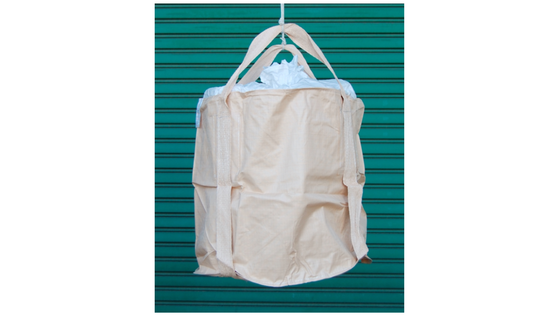 中型鉱物・粉体・建設資材運搬対応フレコンバッグ HS-102R 090611 のご紹介【丸型・全開注入口/容量326L・最大吊り荷重1,000kg・ラミネーション付き・排出口なし】