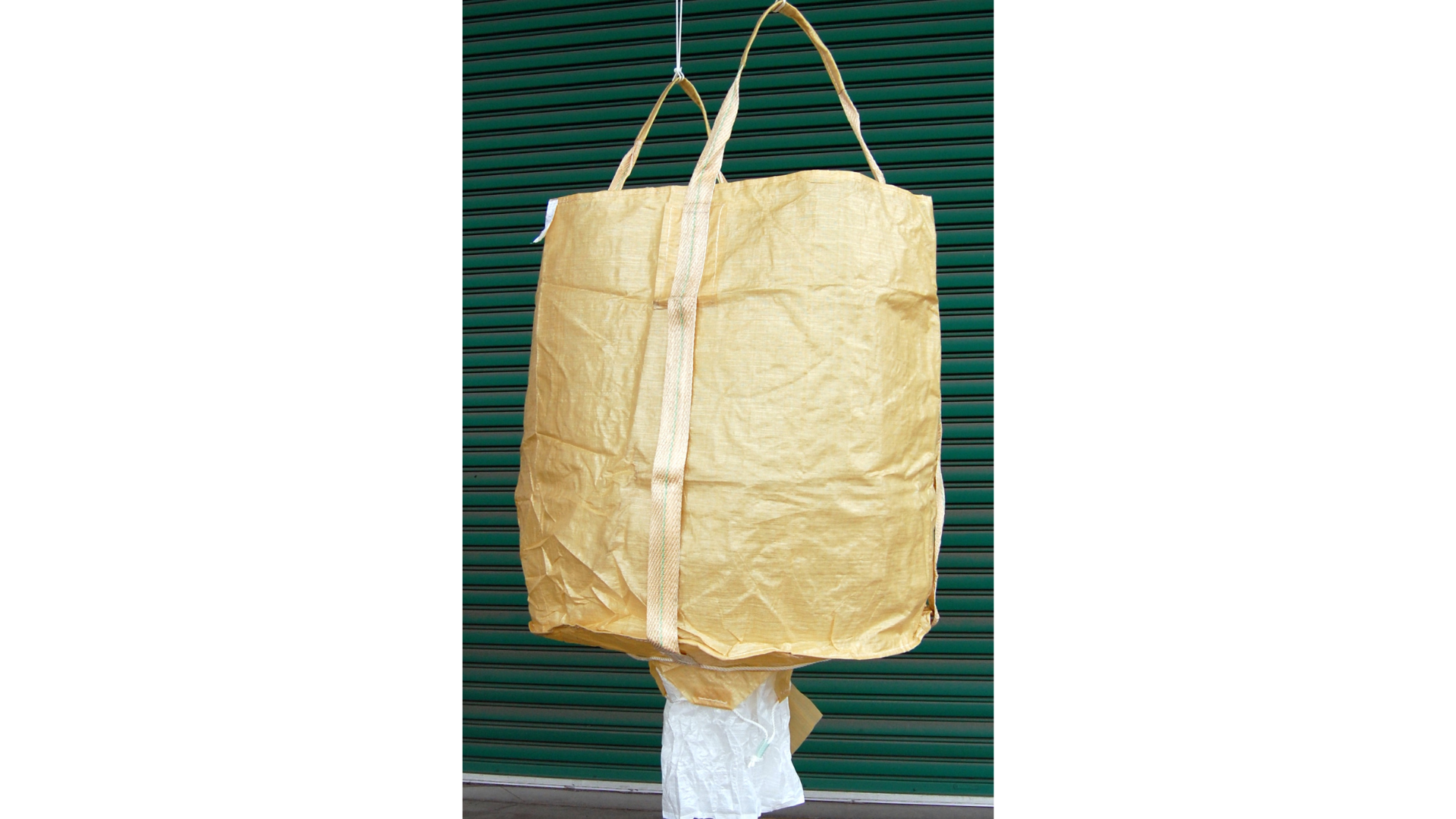 中型鉱物・粉体・化学原料運搬対応フレコンバッグ HS-105R-W 291203 のご紹介【丸型・全開注入口/容量1,045L・最大吊り荷重1,000kg・外ラミ付き・排出口あり】